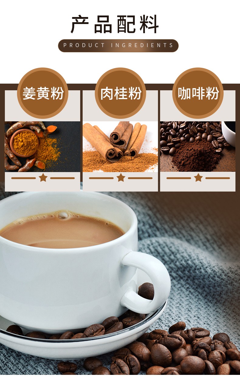 恩慈健康药食同源姜黄咖啡养生女性速溶咖啡生姜肉桂咖啡固体饮料0蔗糖